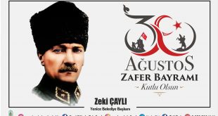 BAŞKAN ÇAYLI’NIN 30 AĞUSTOS ZAFER BAYRAMI MESAJI YENİCE Belediye Başkanı Zeki Çaylı, 30 Ağustos Zafer Bayramı’nın 100 ncü yılı nedeniyle yazılı bir mesaj yayınladı. Çaylı, mesajında şu görüşlere yer verdi: “ Değerli Dostlarımız, Milletimizin bağımsızlık uğruna gösterdiği azim ve kararlılığın tüm dünyaya ilan edildiği büyük zaferin 100. yıldönümünü milletçe kutlamanın …